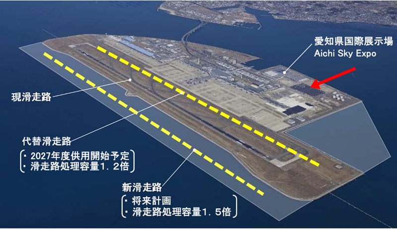 候補地として挙がっているのは、中部国際空港(セントレア)島内にある「Aichi Sky Expo(愛知県国際展示場)」を含む約50ヘクタールです。しかし、航空法では滑走路中心から3km~4kmの範囲において、建物の高さは45mに制限されています。