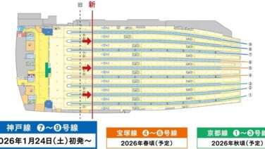 ニュース 話題 阪急「大阪梅田駅」神戸線(7号線・8号線・9号線)の列車停止位置を2026年1月24日から変更 3階コンコース・ホームのリニューアル工事 「芝田1丁目計画」に向けて
