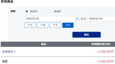 コラム 小説 2026年1月の投資利益は約133万円(特定口座からNISA口座に資金移動)投資残高3500万円