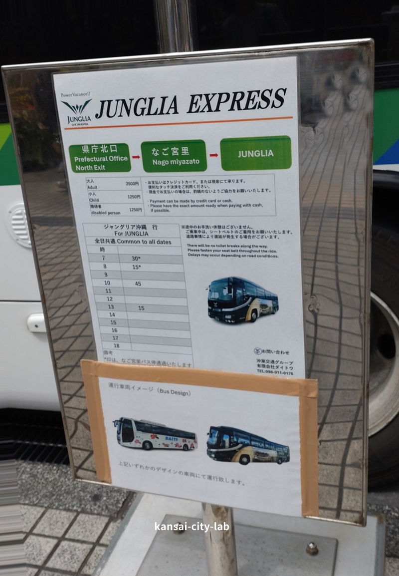 - 料金:2500円(那覇空港・那覇市内 = ジャングリア)