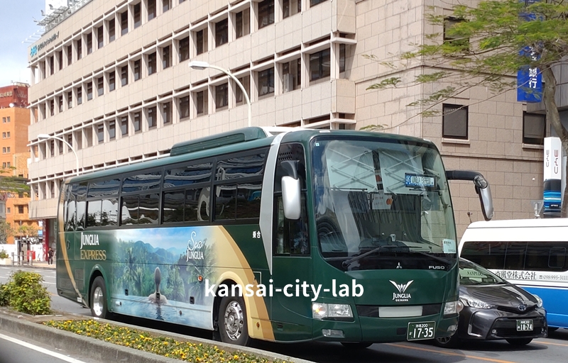 「ジャングリアエクスプレス」は、沖縄北部の大型テーマパーク「ジャングリア沖縄」へ行くための直行シャトルバスです。