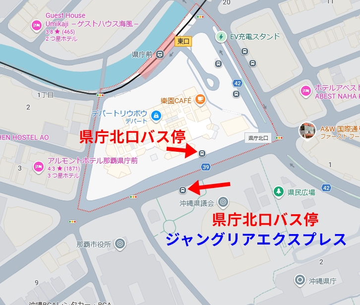 しかし、「ジャングリア沖縄」行きのバスが停まるのは「沖縄県議会側」だけです。