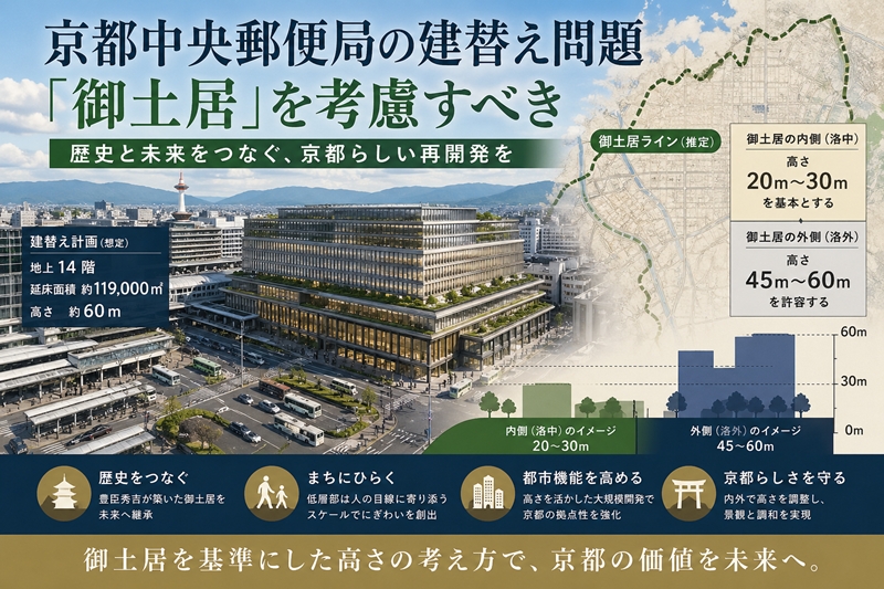 京都中央郵便局の建替え問題―「御土居」を基準に高さを再設計すべき―