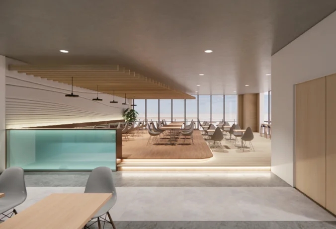 従業員の働きがい向上に資するべく、売店・カフェテリアスペース、ラウンジ、デッキテラス等、共用部の充実を図ります。